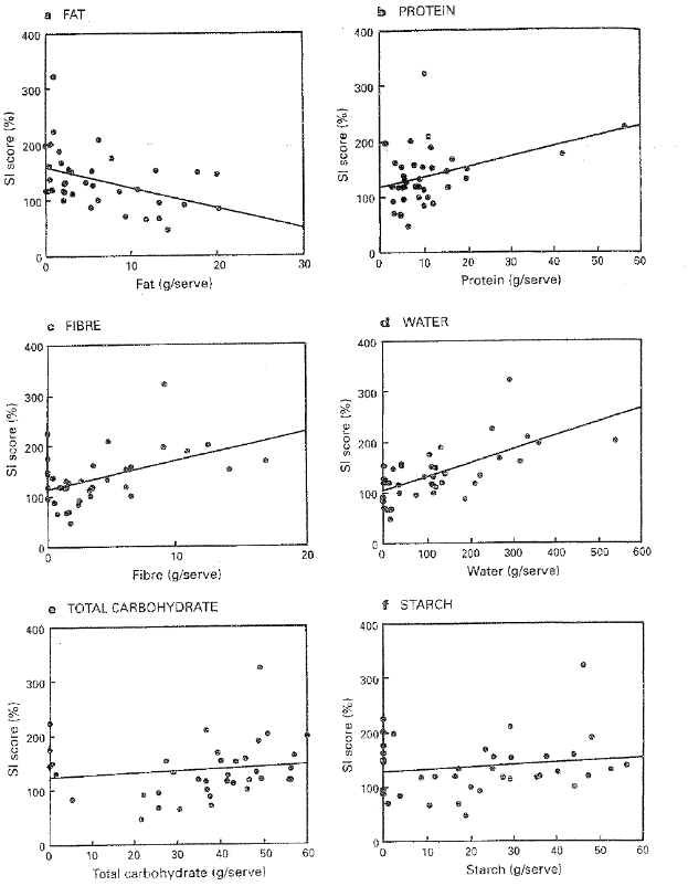 If we reference the satiety index, which measures how filling some of the most common foods are, we can see that foods higher in protein, fibre, and water are considerably more filling.